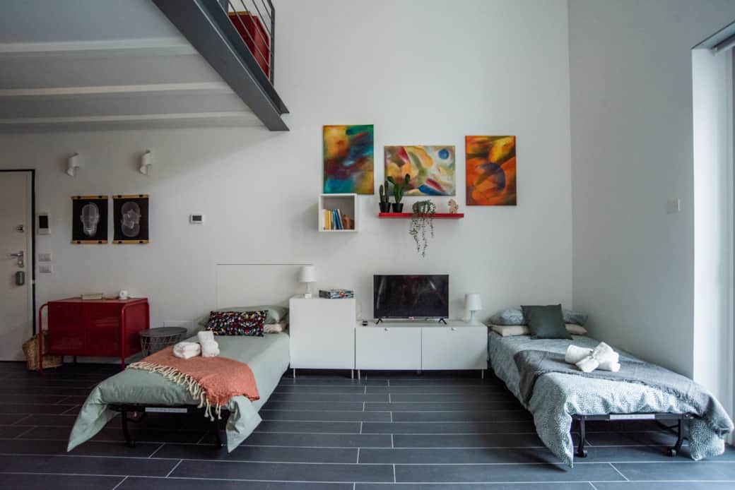 L'alloggio tipo loft è molto luminoso e silenzioso, si trova al secondo piano di una moderna palazzina dotata di ascensore. Può ospitare fino ad un massimo di 4 persone.